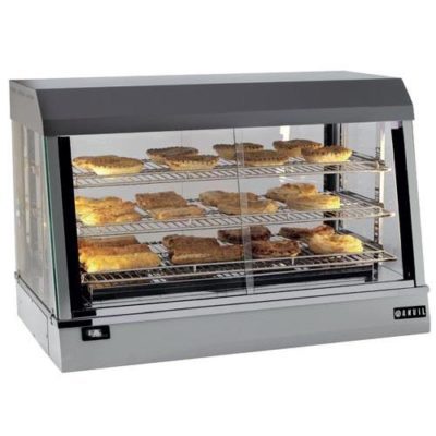 - We also liked the inclusion of both front and rear access sliding doors. This allows your staff easy access to the unit's holding chamber. More importantly, it also gives your customers access to the displayed pies which can be great if they and you are big fans of self-service.
